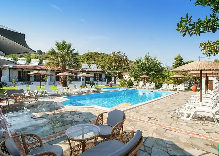 Mindre end 1 km fra Agia Paraskevi byens center, Strawberry Skiathos huser værelser med udsigt over haven.